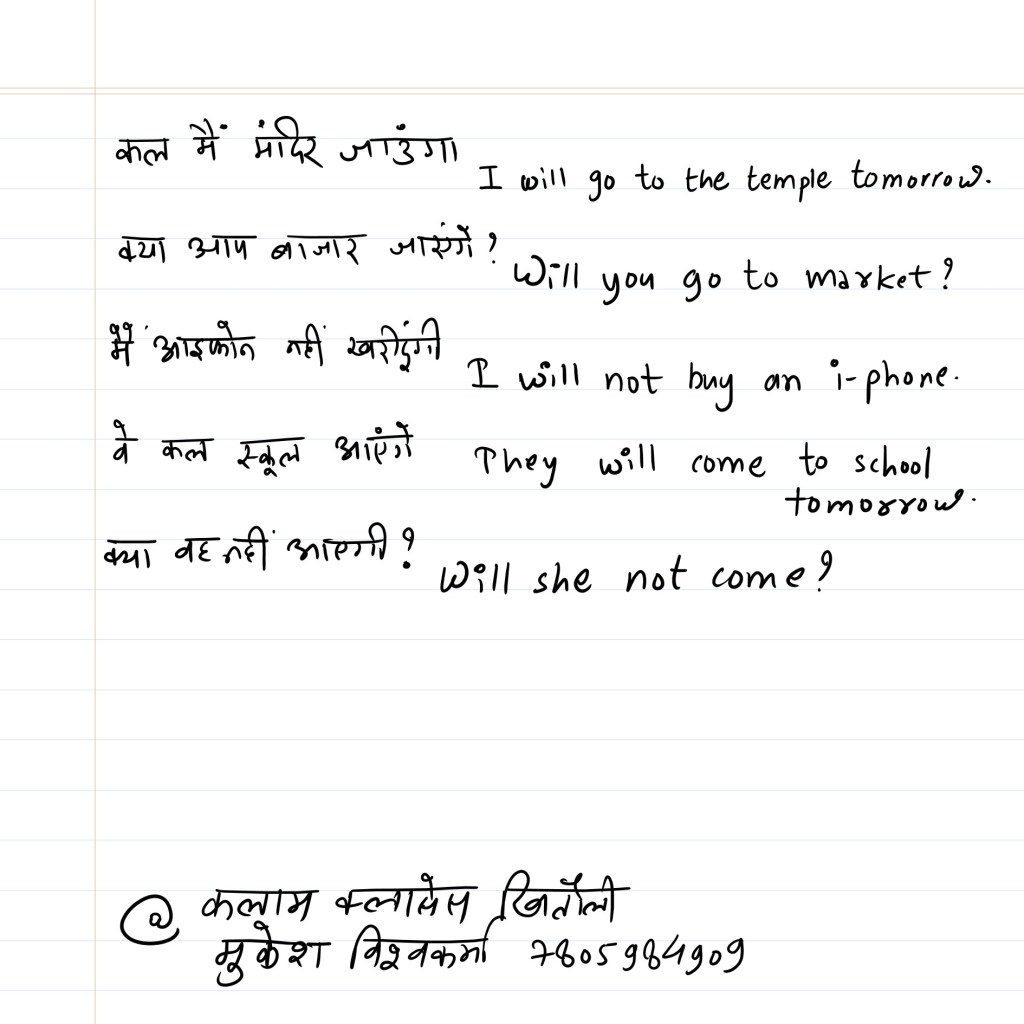 Translate the following sentences from Hindi to English using the Future Indefinite Tense.